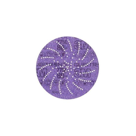 3M™ Cubitron™ II Hookit™ Clean Sanding Film Discs feature 3M ™ proprietary Precision Shaped Ceramic Grain, a revolutionary advancement in abrasive technology. The sharp, triangular shaped ceramic mineral is designed to slice through the substrate, rather than gouging or “plowing” like conventional abrasives, resulting in a disc that cuts up to 2x as fast and lasts up to 6x as long as conventional abrasives.