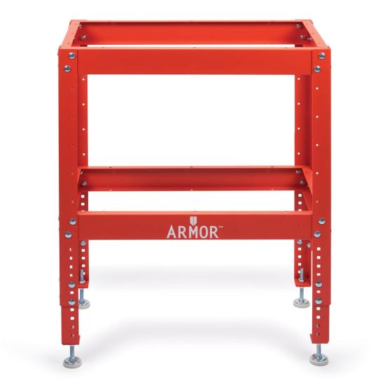 The ARMOR Adjustable Height Heavy-Duty Steel Stand is a versatile and robust support system for various worktable configurations.