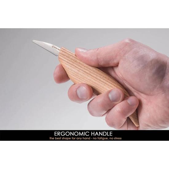 The BeaverCraft C15 Detail Carving Knife boasts a fine point for precise, narrow cuts and detailed craftsmanship. Its flexible blade ensures enhanced precision, perfect for delicate cuts when carving...More Details