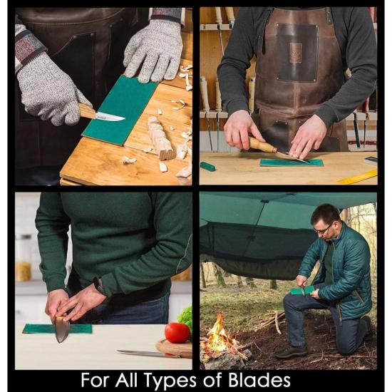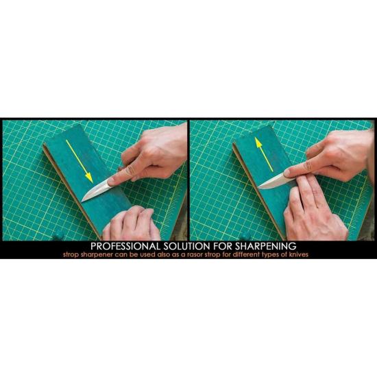 You can sharpen your wood carving knives just with one leather strop. But to get more effective results, you can use a green polishing (stropping) compound. This polishing compound is blocky, hard, and has a crayon-like texture. Just apply it to leather or a stropping block, and make your knives razor-sharp easily.
