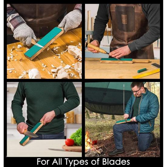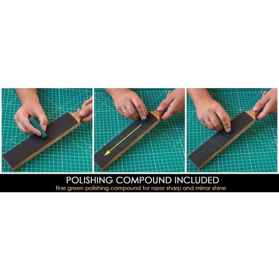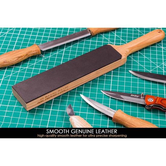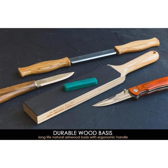 BeaverCraft Small Dual-Sided Leather Paddle Strop with P01 Polishing Compound