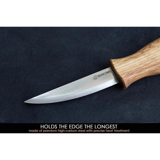 BeaverCraft Small Whittling Knife with an Oak Handle
