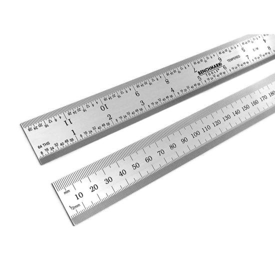 Benchmark Tools™ Rigid 300mm (12") English/Metric Brushed Steel Machinist Rulers