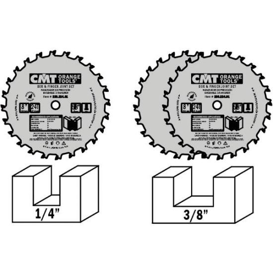 CMT Orange Tools Chrome Carbide 8" Box and Finger Joint Set, 24-Teeth, Flat Top Grind, 0.250" Kerf