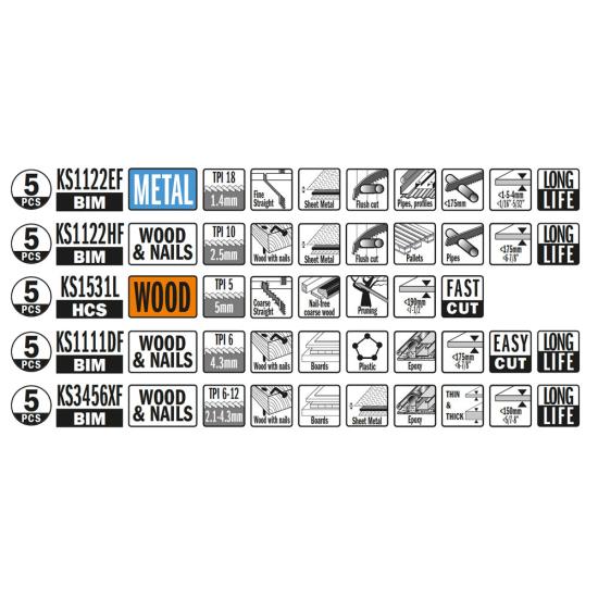 CMT has choosen the 5 most popular Recip Saw Blades for our 25-piece set. This set includes recip saw blades for: ● Construction wood, wooden wall, boards like chipboard and MDF, plywood...More Details