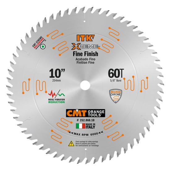CMT ITK Xtreme Orange Chrome Thin Kerf 10" Fine Finish Crosscut Blade, 60 Teeth, Alternate Top Bevel (ATB) 0.102” Kerf 252.060.10