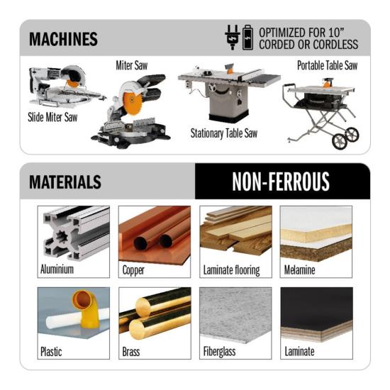 Applications: for ripping & crosscutting non-ferrous metals and laminates
