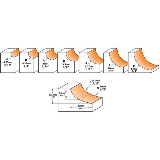 CMT Orange Tools Cove Router Bits 2 Flutes Carbide Tipped