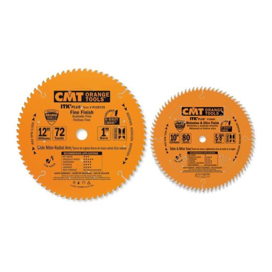 CMT Orange Tools ITK Plus Fine Finish Saw Blade Bundle with 10" 80T ATB Table Saw Blade and 12" 72T Mitersaw Blade ATB