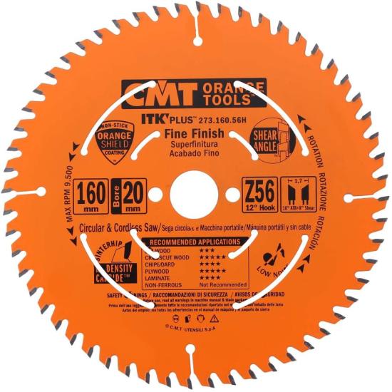 CMT Orange Tools ITK PLUS Track Saw Blade (compatible with Festool), 160mm, 56-Teeth, 20mm Arbor, Alternate Top Bevel Grind, PTFE Coated