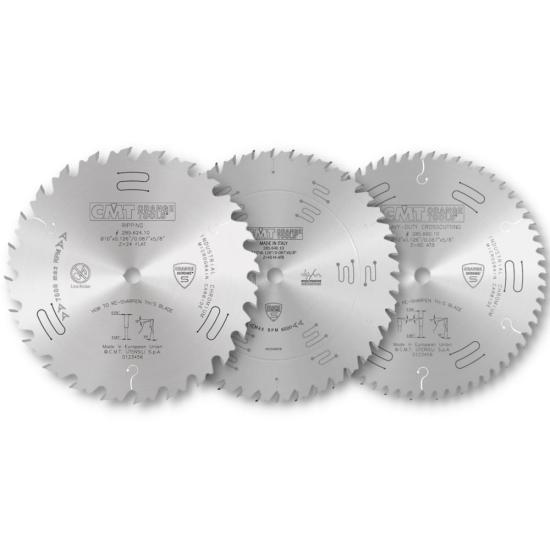 These saw blades are part of the CMT Industrial Orange Chrome/Xtreme premium line of blades. These are some of CMTs highest performing saw blades and designed for professional woodworkers who require high precision and durability. The special chrome carbide reduces tooth abrasion and the chrome plated body protects against rust, corrosion and guarantees long-lasting performance. These blade are designed to be run all day and can cut wood, plywood, OSB, laminate. Melamine, moldings and MDF.