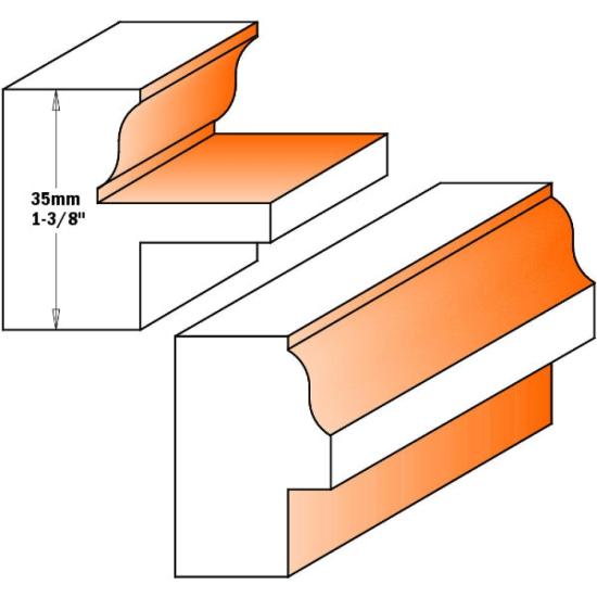 CMT designed this set so you can create window sashes that are as beautiful as they are functional. As an additional feature, the CMT window sash set will also mill perfectly joining 35mm (1-3/8") rail and stile parts for custom made doors. Like all CMT quality bits, this set includes our anti-kickback design feature and our trademark non-stick orange coating. Made of Fatigue Proof® steel with carbide-faced cutting edges for longer life. Each set contains one 38mm (1-1/2") bit and one 35mm (1-3/8") bit designed for cutting 35mm stock.