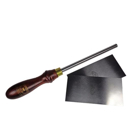 This set consisting of a Crown cabinet scraper burnisher and a 2 piece set of Crown rectangular cabinet scrapers. Both items are made in Sheffield England. The burnisher has a beautifully turned genu...More Details