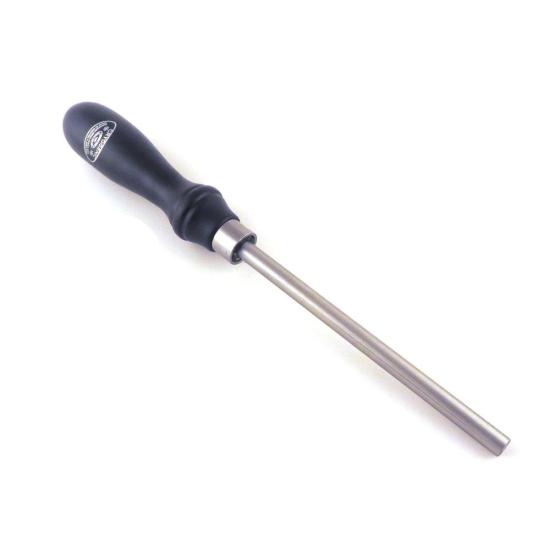 This Crown burnisher by Crown Hand Tools in UK is the perfect tool for putting a hook on the edge of cabinet scrapers. The rod is subjected to high temperatures and then rapidly frozen to -300° F. This cryogenic treatment produces a super hard scraping surface. The blade is polished to a very smooth finish. The handle is stained beech. Overall length is 11".
