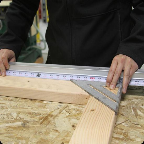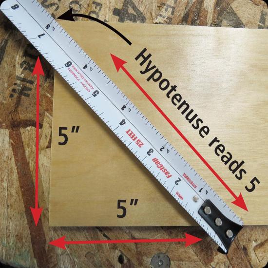 The Square One Tape Measure was designed to quickly help you find the hypotenuse (square) of anything. It has a dual scale; one side is a standard scale, the other side is an exaggerated hypotenuse scale. Zero math, zero mistakes.