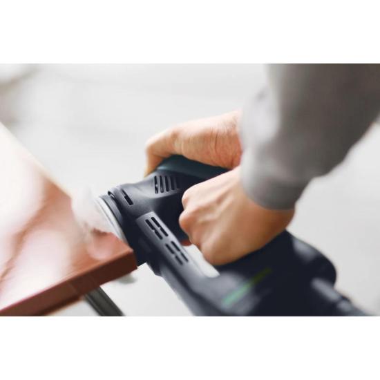 Slip on the edge protector to prevent incidental contact with adjacent surfaces. Create sensationally smooth finishes with ease. Sit back in amazement as you gaze at the results you achieved with utter ease. Connected to a Festool dust extractor, work in a near-dust-free environment. Well-balanced and practically vibration-free.