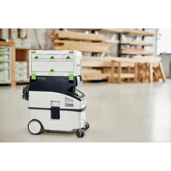 • Seamlessly connects to all Festool SystainerS, SORTAINERS and CT Dust Extractors for easy transport