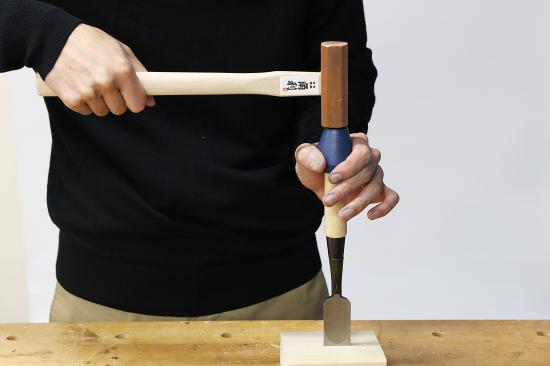 A hoop setter is an essential tool for properly seating the steel hoop (katsura) on Japanese chisels. The hoop protects the handle end from splitting when struck with a metal hammer, but it must be set below the end of the chisel handle and secure to perform correctly.
