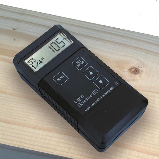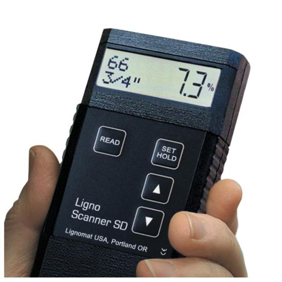 The Ligno-Scanner SD is a dual-depth pinless moisture meter, easy to use and self-calibrating. The dual-depth meter has 2 independent sets of calibrations, one for measuring 1/4″ deep and one for measuring 3/4″ deep. Dual-depth settings are available for all wood species settings and the reference scale, an advantage over standard pinless meters, which have a fixed 3/4″ measuring depth.
