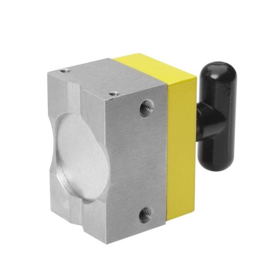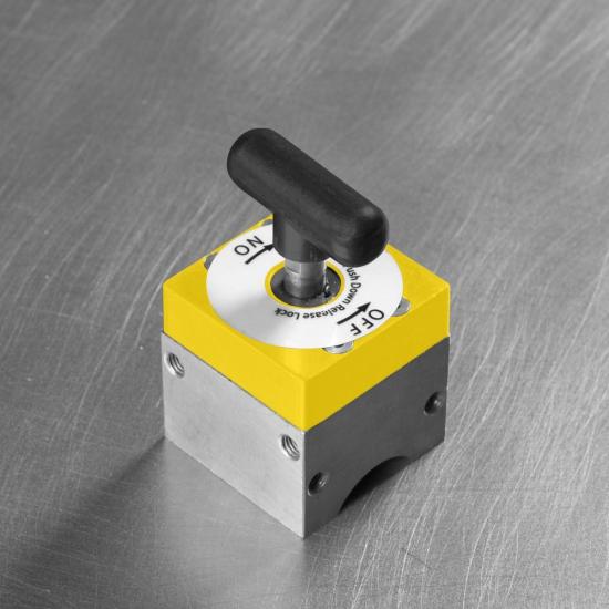 The most versatile workholding and fixturing tool ever! Align and secure flat or round pieces of steel to fabricate angles. Pull corners, secure steel for cutting, use as a guide, make your own fixtures and more! Turn the knob on and off to control 150 pounds of magnetic holding force.