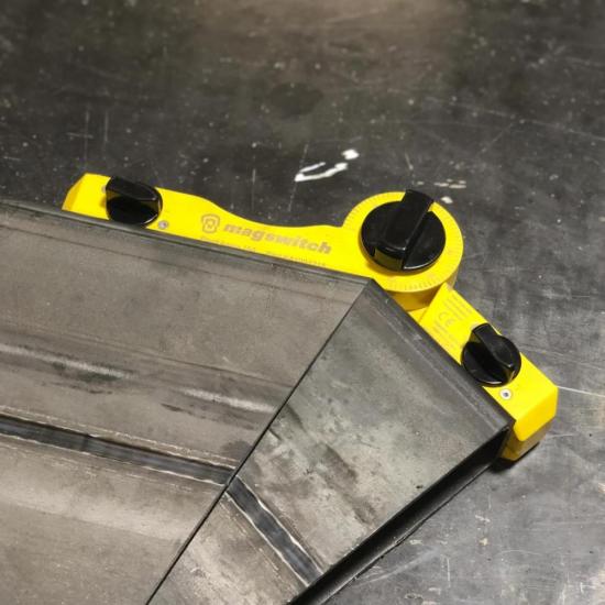 Magswitch Pivot Angle 150 Mini has a holding angle range from 0 to 270 degrees, with each axis featuring a Magswitch magnet with a 150 lb. (68 kg) holding capability. No helping hands required.