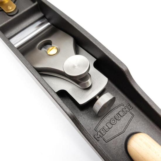 The plane mouth is fully adjustable, allowing for control over the thickness of the cut. Close the mouth to prevent tearout or open it up for thicker cuts.