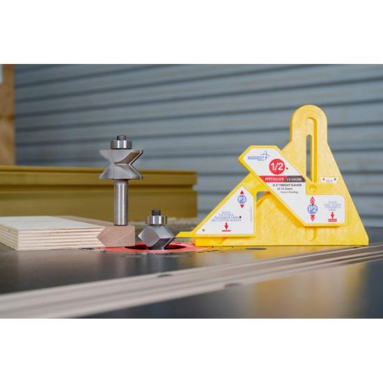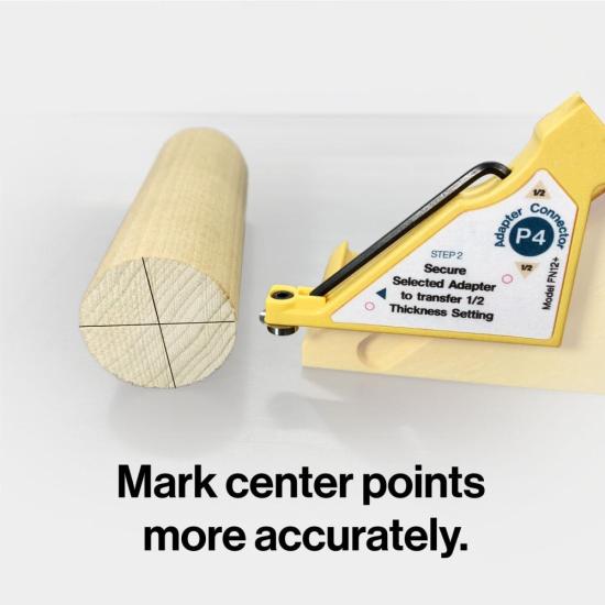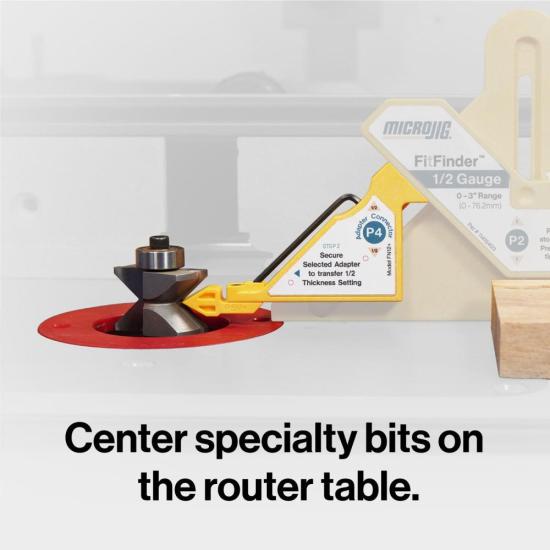 The FITFINDER 1/2 Gauge automatically finds the center of your workpiece using simple geometry. Lock the measurement in place and set the cutting depth of your saw blade/router bit, or set fences.