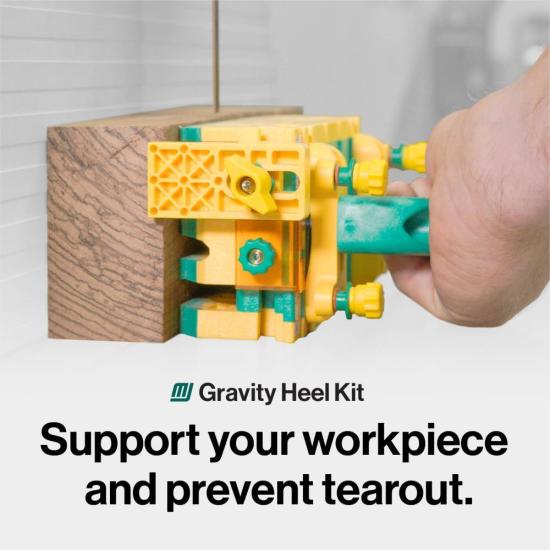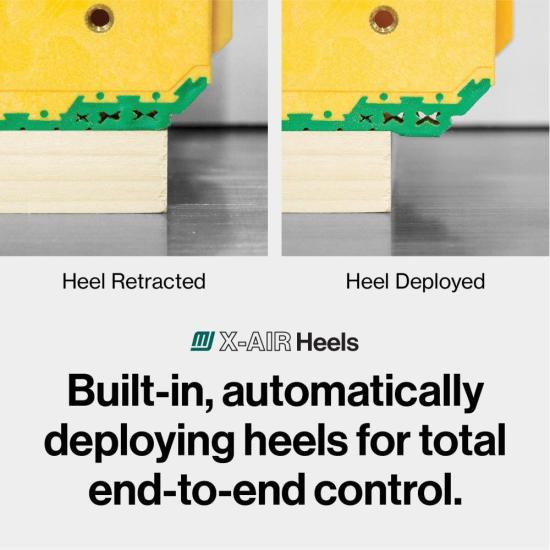 2. The X-AIR Heels flex out of the way mid-cut, then drop into position at the end—automatically. Nothing to attach, nothing to lose. Meanwhile, the Gravity Heels give you dial-in adjustability when you need it: hook thinner strips, lower them for thicker boards, or let them act as a sacrificial backer to reduce tear-out. Between the two, you get plug-and-play simplicity and pro-level customization in one package.
