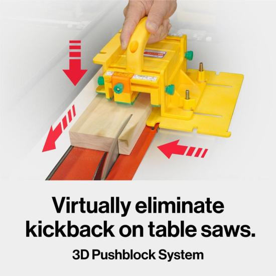 The Grr-ripper® Pro 3D Pushblock offers the same level of precision, safety, and control as the original, but with two additional accessories for even more grip and versatility. It’s the safest push block in the world, now made even safer with the new SafeRip Kit, which enhances the tool's safety features by preventing accidental blade contact with the Center Leg. The SafeRip Kit guides your setup, ensuring the Center Leg is always positioned safely away from the blade.