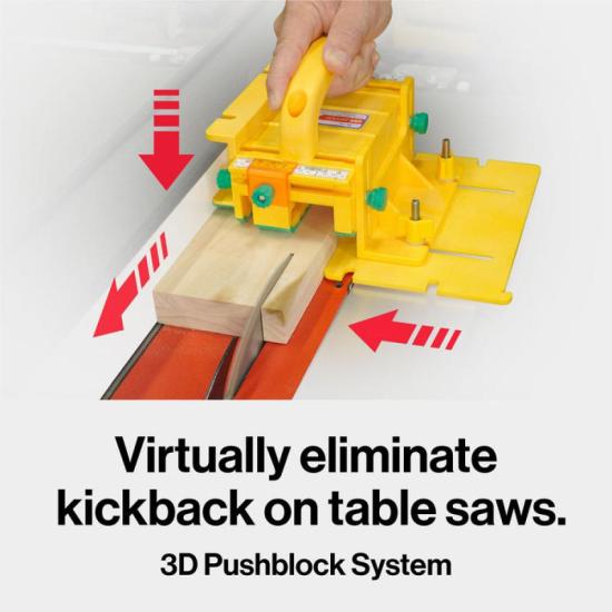 Included Upgrades:The Grr-ripper® Pro 3D Pushblock offers the same level of precision, safety, and control as the original, but with two additional accessories for even more grip and versatility. It’s the safest push block in the world, now made even safer with the new SafeRip Kit, which enhances the tool's safety features by preventing accidental blade contact with the Center Leg. The SafeRip Kit guides your setup, ensuring the Center Leg is always positioned safely away from the blade.