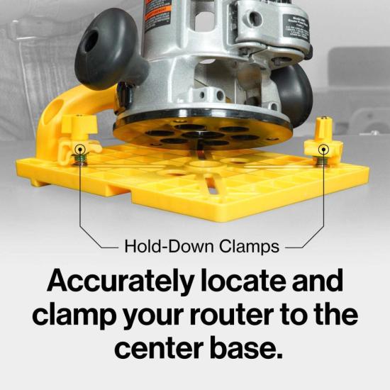 Router Compatibility: Fits most routers with 4"–7" bases and 1–3 HP motors. 1-3/8” Porter-Cable style bushing adapter required. Router sold separately.