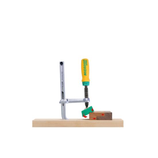 The X-PAD applies hold-down and in-line pressure as the clamp tightens. The combined forces keep your workpieces flat and eliminate the need for two or more different clamps.