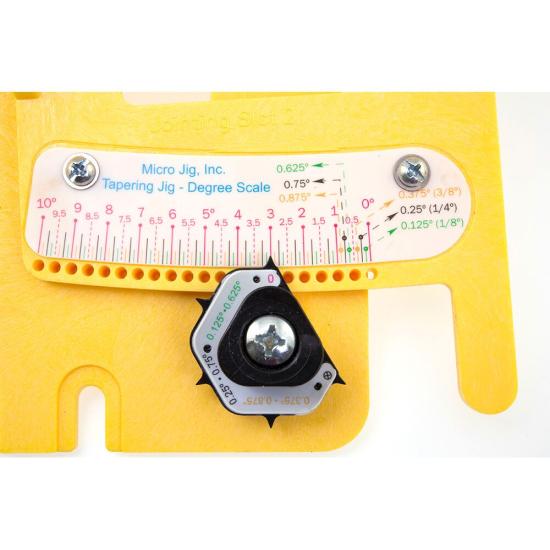 Precision is the key to unlocking the true potential of your woodworking projects. The MICRODIAL Tapering Jig boasts infinite taper adjustments between 0 and 10 degrees, allowing you to achieve taper cuts with an incredible accuracy of 1/8 of a degree. Our easy-to-use Rise Over Run ColorMatch dial sets your taper between 0" to 2" with 1/16" intervals, while the Degree Scale ColorMatch dial enables you to set exact angles effortlessly. Say goodbye to guesswork and unleash your creativity!