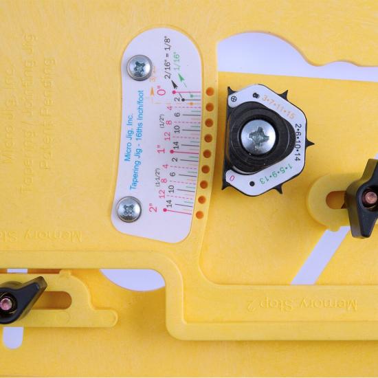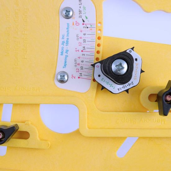 Maximize your efficiency with the MICRODIAL Tapering Jig's two independent MemoryLocks. Quickly set, lock, and switch between angles, eliminating the need for time-consuming, single-use jigs. Our built-in settings ensure precise setups for every project so that you can work faster and smarter.