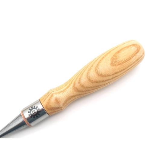 Richter chisel handles are made of domestically and responsibly harvested European Ash known for its strength, toughness and attractive grain. The ergonomic handles are sanded and then receive a friction shellac finish for maximum protection, comfort and control. Solid stainless-steel ferrules protect the handles from splitting, and leather washers absorb the shock of mallet blows.