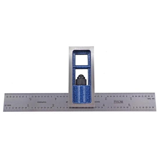 Made in the USA by Products Engineering Corporation (PEC Tools) a premier US tool manufacturer. They are manufactured in accordance with the derived tolerances from the FEDERAL SPECIFICATION NO. GGG-S-656E 29 Jan 1996 and are guaranteed to be square to within 0.0015" (one and a half thousandths of an inch) over the length of the blade. These blades have hardened and tempered no-glare satin chrome finish. Graduations are precision photo etched and then black filled for easy readability. Head is machined cast iron with a baked-on finish. Fits perfectly in the hand and in the apron pocket.
