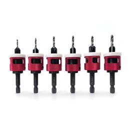 6-Piece Set Carbide Tipped Countersinks with Non-Mar Adjustable Rotating Depth Stops and Quick Release Hex Shanks