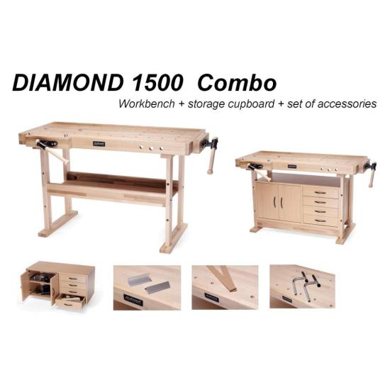 The Ramia Diamond 1500 Workbench delivers nearly all the same great features as the larger Diamond 1800 but in a more compact design, being about 1 foot shorter. This bench is a great choice for smaller workspaces. This versatile workbench includes two vises with cast housings, precision lead screws, and dual steel rods for smooth, parallel movement along the benchtop. You can mount the vises in one of four positions, accommodating both right- and left-handed users or allowing a vise on each end of the bench. Predrilled holes make installation straightforward and hassle-free. Vises open to more than 5”.