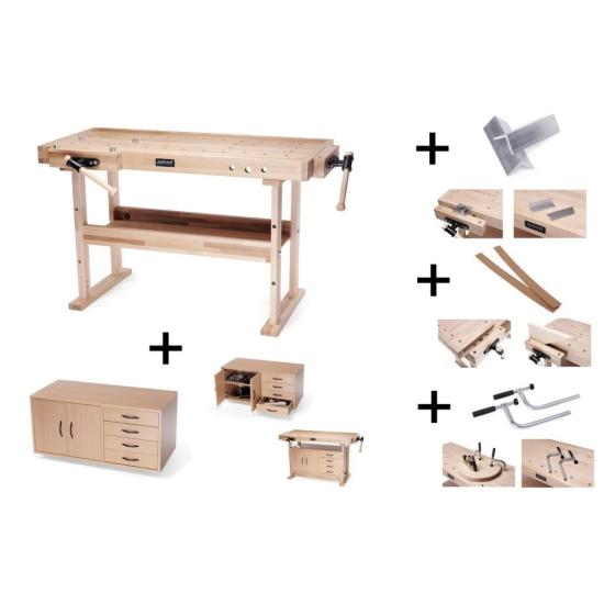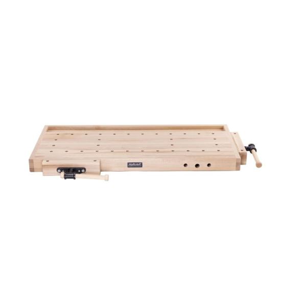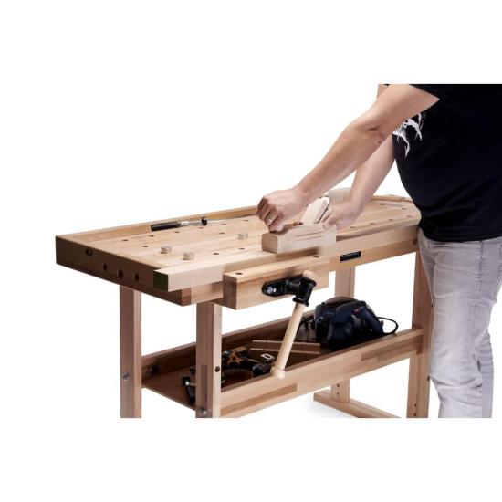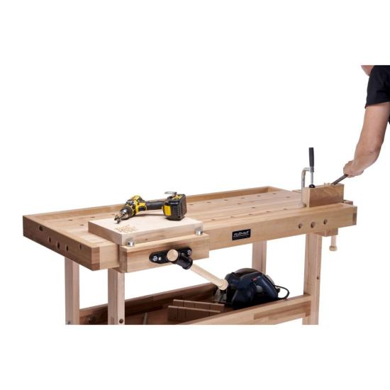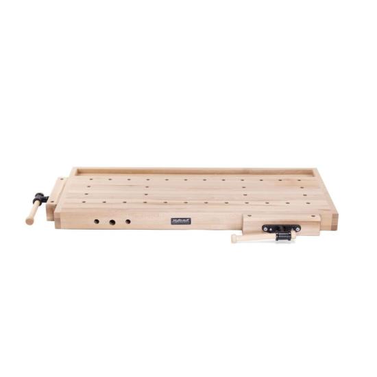 The PROFI Workbench Accessory Kit (UN-SET-PRO) adds even more versatility, including vertical holdfast clamps and sets of aluminum and cork vise clamping pads that protect the vise faces and delicate materials from damage during use. For metalworking tasks, the kit also includes a steel anvil plate with an integrated bench dog, allowing you to work metal without risking harm to the benchtop.