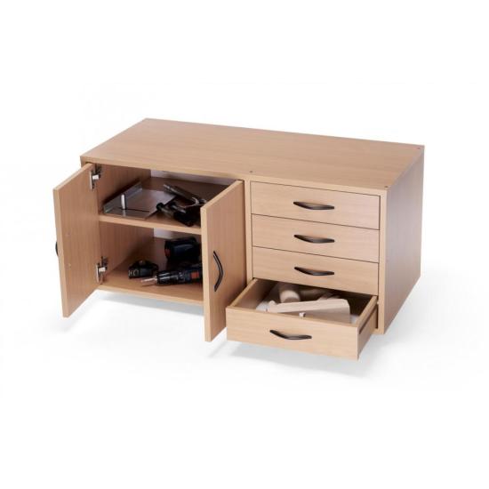 This optional storage cupboard is designed to fit all Hobby Series workbenches, providing valuable extra storage space in your workshop. The design features four drawers on one side and a full-height cupboard on the other, allowing you to keep frequently used tools within easy reach while storing other tools and accessories in the cupboard, protected from dust and shavings.