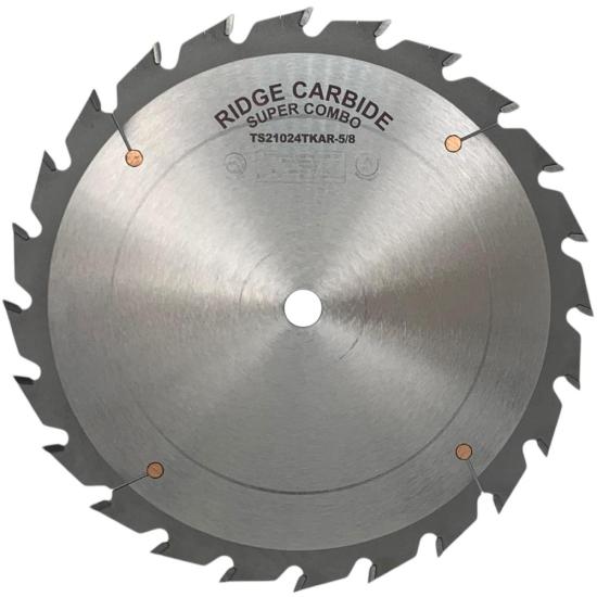 Ridge Carbide 10" 24T Super Combination Table Saw Blade, Alternate Raker Grind(2+1) ,+20° Hook, 5/8" Bore, Plate Thickness 0.072", Thin Kerf (.102") For Cutting Wood and