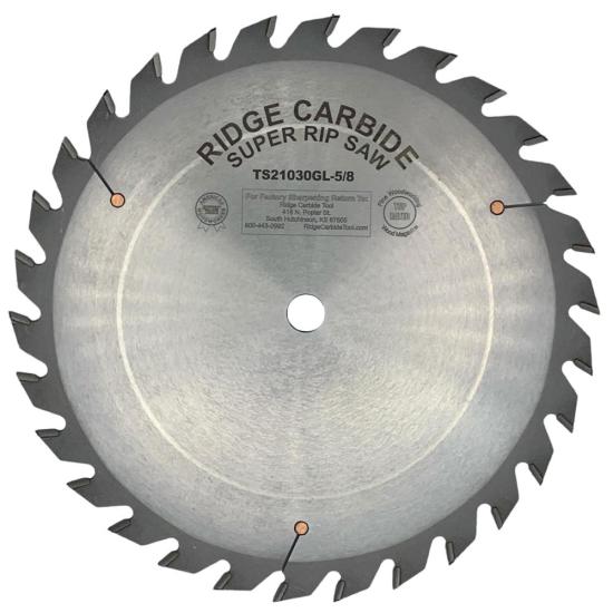 Ridge Carbide 10" 30T Glue Joint Rip Table Saw Blade, Triple Chip Grind (TCG),+20° Hook, 5/8" Bore, Plate Thickness 0.094", Full Kerf (0.145") For Cutting Wood and Sheet Goods
