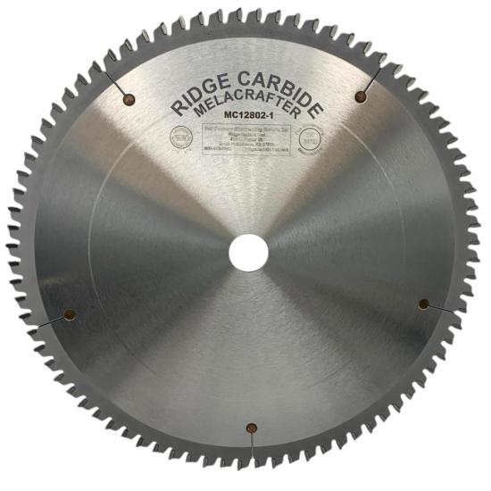 Ridge Carbide 12" 80T, Melacrafter Saw Blade, Alternate Top Bevel Grind (ATB),-5° Hook, 1" Bore, Plate Thickness .098", Full Kerf (0.128") For Fine Cutting Laminated Board Materials