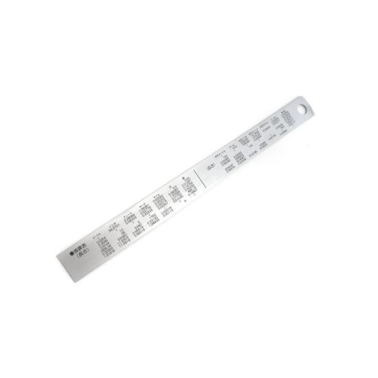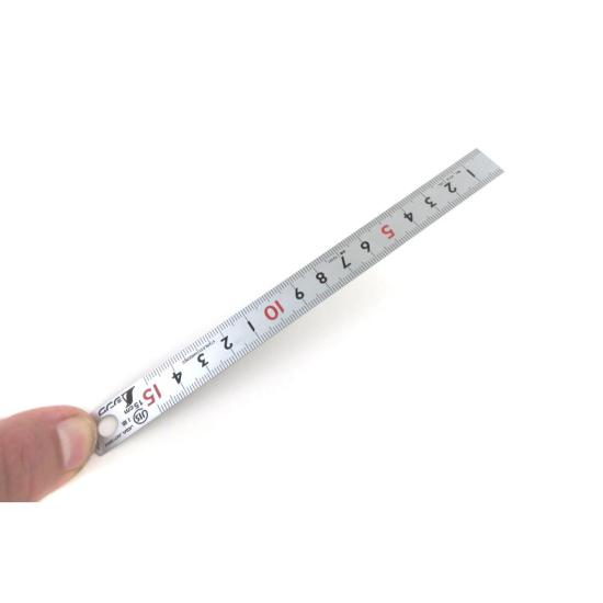 This rule is manufactured in Japan by Shinwa Measuring Tools Corporation, a premier measuring tool manufacturer. It is made from the finest stainless steel available and is hardened and tempered. It has a zero glare satin chrome finish which makes it easy to read and will prevent corrosion. Markings are precision photo etched and then black filled for easy readability. Both long edges and one end ends are ground flat and straight. Other end has a slight bend which make it easy to pick up from smooth, flat surfaces. Accuracy conforms to Japanese Industrial Standard (JIS) B 7516 Grade 1.