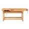 Can be equipped with an optional extension Clamping Platform (SJO-33467) to create nearly 8 feet of work surface. The worktop is constructed using full-length laminations of knot-free European beech, without unsightly splices, and the preassembled trestle frames are also solid beech. Treated with top-quality oil, these benches are built to last for generations.