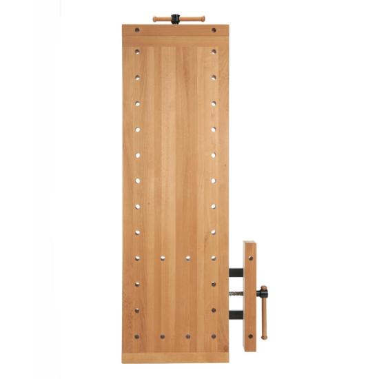 Can be equipped with an optional extension Clamping Platform (SJO-33467) to create nearly 8 feet of work surface. The worktop is constructed using full-length laminations of knot-free European beech, without unsightly splices, and the preassembled trestle frames are also solid beech. Treated with top-quality oil, these benches are built to last for generations.