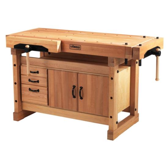Sjobergs European Beech Elite 1500 Professional Workbench with Storage Cabinet and Accessory Kit 59" x 29" with 3-3/8" Top (DCE)