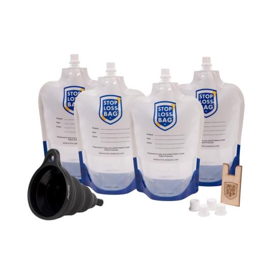 StopLossBags Steward™ DIY Bundle - 4-Pack Solvent Bags, Funnel, Filler Clip, 4-Extra Caps