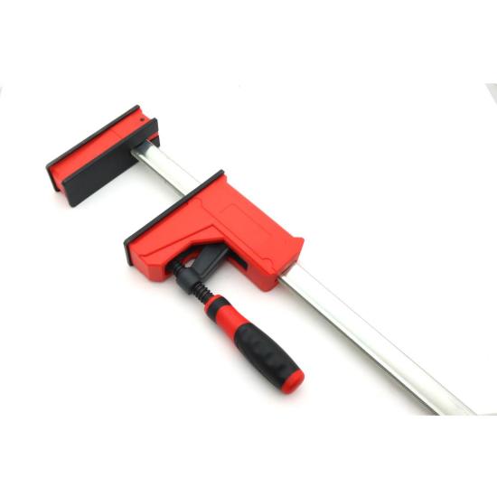 The moveable clamp stand on the rail enables clamps to stand upright for one-handed operation and facilitates effortless clamp adjustment.
