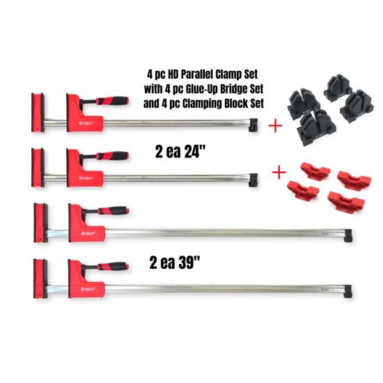 Taytools 12-Piece HD Parallel Clamp Set with 4 Clamps (2 each 24" & 2 each 39"), Corner Blocks Set & Glue-Up Joint Bridge Set